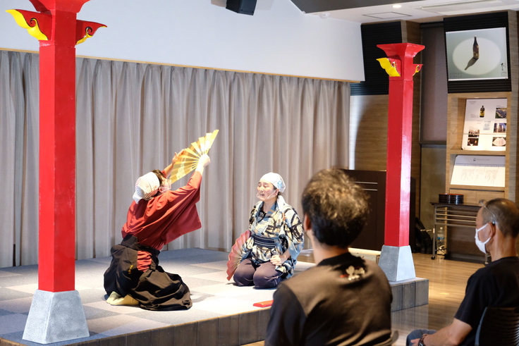 西上…そこですか!(笑)本当は大山酒造さんにも甲斐商店さんにもお邪魔したかったんですけどね。伊佐の焼酎を題材にした劇ですから、今伊佐で焼酎を作っていらっしゃる方々にまずご覧いただきたくて計画した公開通し稽古でした。同時に、ここでいただいた反応で作品をブラッシュアップする狙いもありました。ただ、この時の1番の収穫は、「ボクが司会をしてはダメだな」ということです。(笑)観てくれる方達の緊張を解くのが司会の1番の仕事なのに、ボクの司会では逆に緊張させてしまっていましたから。この公開通しのすぐ後にボクは本番の司会をお願いしに西和博さんの所に行きました。また、この日まではボクが務めていた後見(こうけん/舞台上の小道具を動かしたりする仕事)も島田佳代さんにお願いをしました。