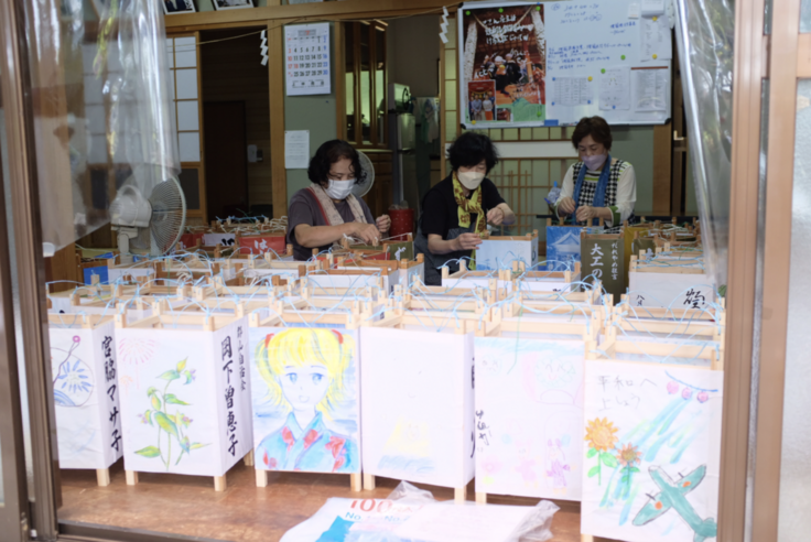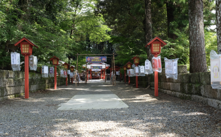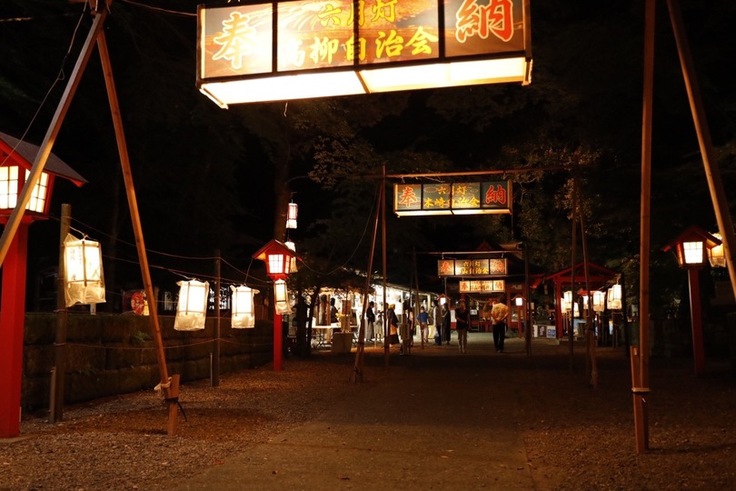 氏子総代会と地元自治会の皆さんが本番を盛り上げるために灯籠を飾ってくださいました。