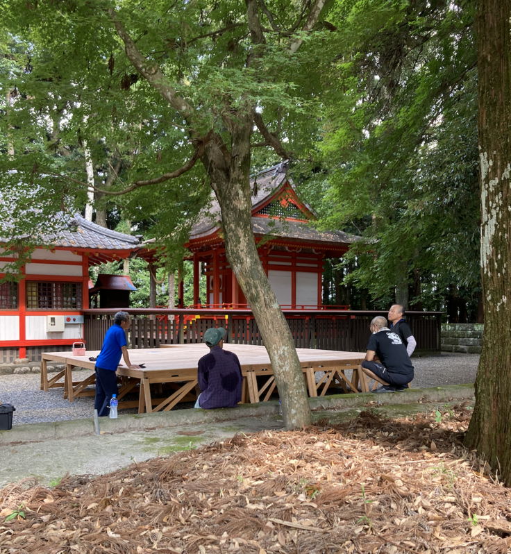 西上…そして伊佐市文化会館のスタッフさんや西さん達の協力の元、八幡神社の境内に舞台が組まれていきました。
