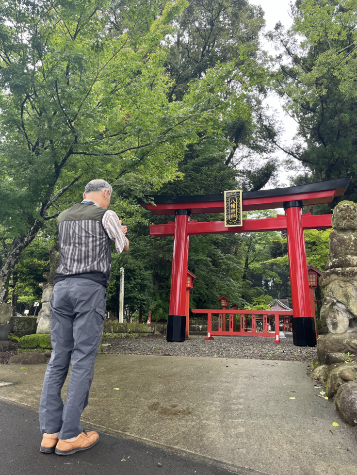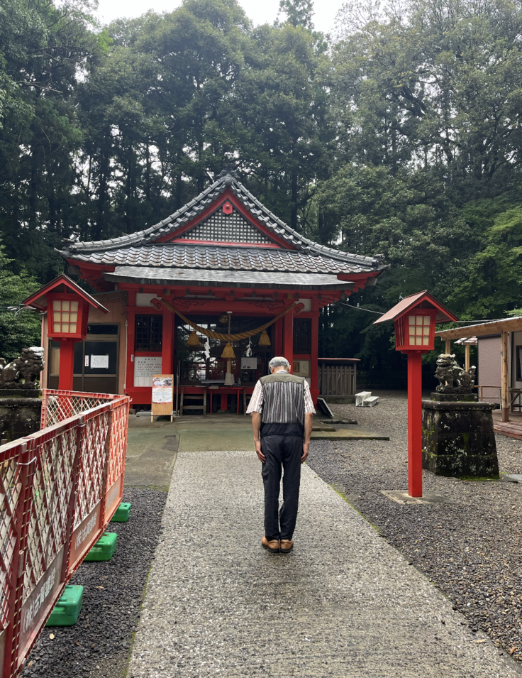 ※伊佐の方には言うまでもでもないことですが、隈元さんは伊佐市と合併前の大口市の市長を1996年から2020年まで約25年間務められていた方です。八幡神社への参詣は、市長を退任された今もなお続いています。