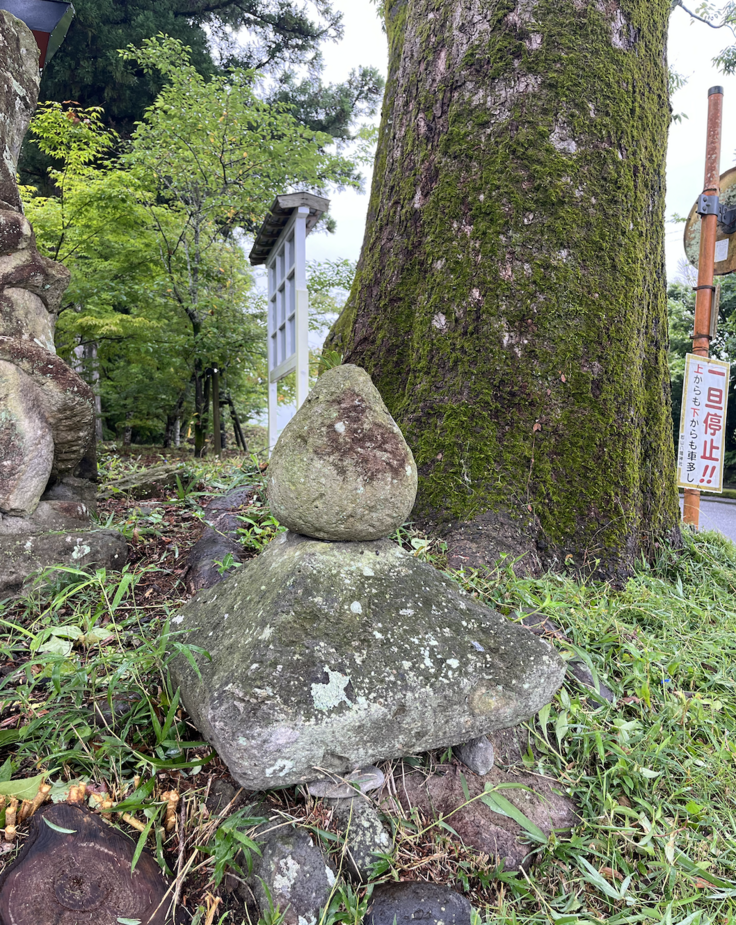 隈元さん…あれはまず拝殿が近づいてきたので拝殿に、そして水場に、その隣の皆さんの願いが込められた絵馬に、そして島津斉興がこの地にやってきた時の碑に、そして八幡神社のご神木に、ですね。