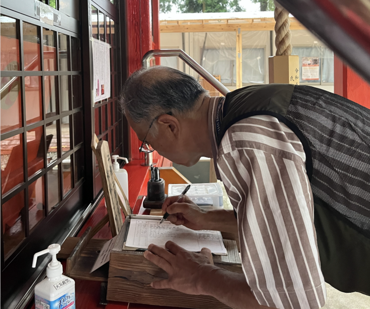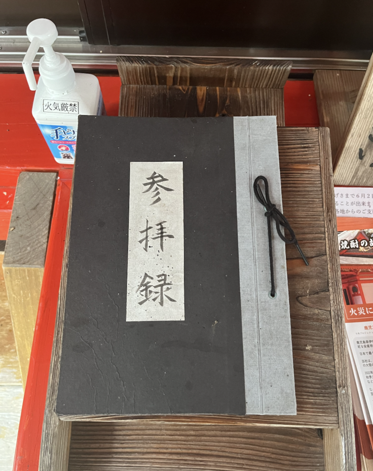お参りを済ませて参拝録への記帳