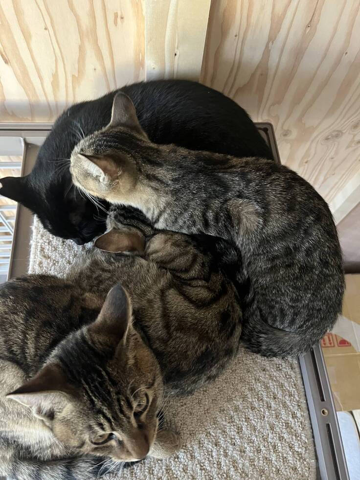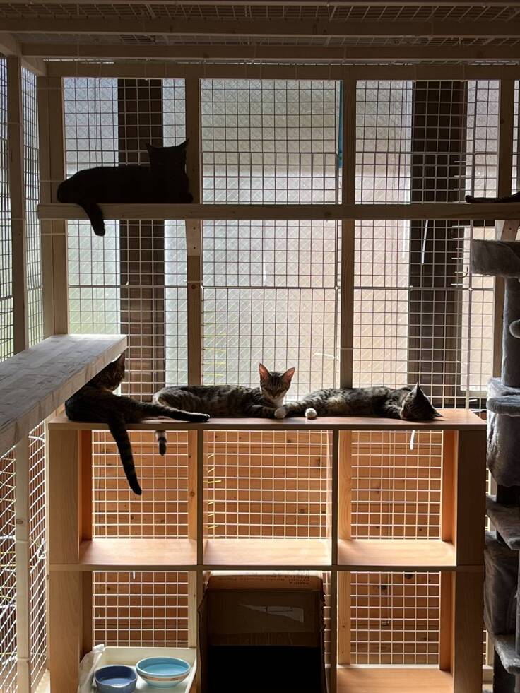 こうして猫との暮らしがスタートしましたが、突然保護された🐈⬛生粋の野良猫である母猫がすぐに馴れるわけもなく「シャーシャー」と怖かったこともあり、「いきなり猫4匹との生活は…大丈夫ですか?💦」と中村さんが心配してくださり、何か困った時に、外の活動で忙しい中村さんと連絡が取れない時でも他のボランティアスタッフさんに相談できるように、「もしよかったら、猫との生活についてシェルターへ勉強に来ませんか?自分が大丈夫と思えるまで」と短期のボランティア活動を勧めていただきました。