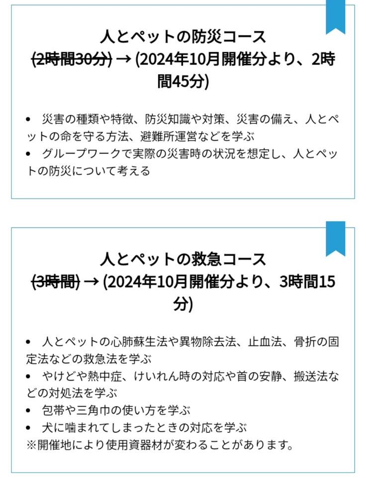 災害など有事以外でも、日常的に知っておくと役立つこと、たとえば、人やペットの気道異物除去(のどに詰まった時)、犬に噛みつかれてしまった時の引き離し方、止血法、どこをどの強さでどうするのか、など知っていれば咄嗟の対応ができます。