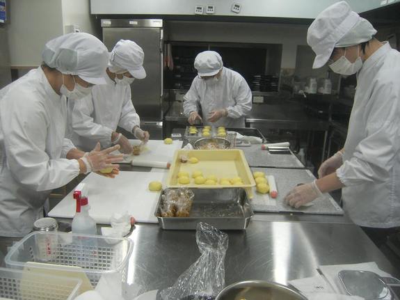 (伊勢おやき製造の様子です。様々な方がここで働いています。)