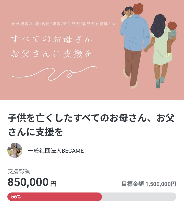 ですが、悩んでいる間にも赤ちゃんとのお別れをしている人がいる、《今》まさに苦しんでいる人がいる、というのをSNSを通じ改めて感じ、サポートが必要な人に一日でも早くサポートを届けたい、その一心でクラウドファンディングをスタートしました。