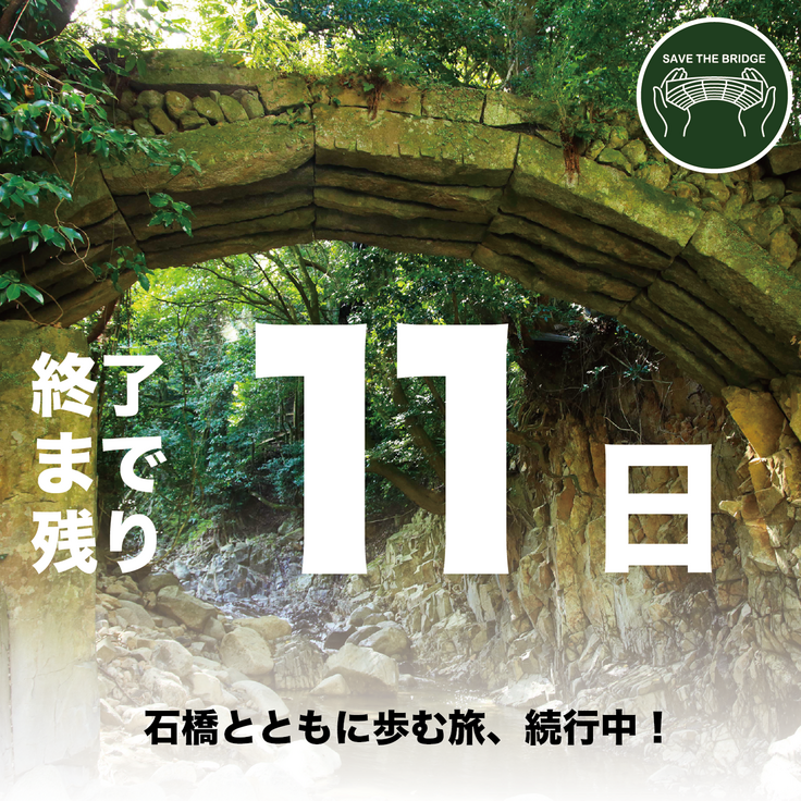 しかし、目標額800万円達成までには、まだあと約460万円が必要です。残り11日間、引き続きのご支援が、この石橋を未来に残す力となります。どうか最後までお力添えをいただければ幸いです。
