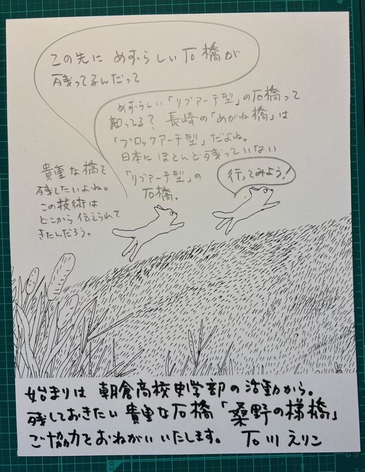 皆さまのお力添えに支えられ、桑野の梯橋保存プロジェクトのクラウドファンディングは残すところあと1日となりました!このプロジェクトに、地元嘉麻市出身の絵本作家である石川えりこさんも応援メッセージを寄せてくださいましたので、ご紹介いたします。