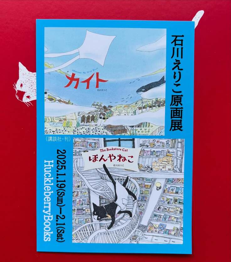 2025年1月19日(日)〜2月1日(土)、千葉県柏市にある「バックルベリーブックス」にて、石川さんの絵本『ほんやねこ』と『カイト』の原画展が開催されます。1月26日(日)14:00からは石川さんご本人が来場される予定です。石川えりこさんの絵本原画の魅力に触れる貴重な機会ですので、ぜひ足をお運びください!