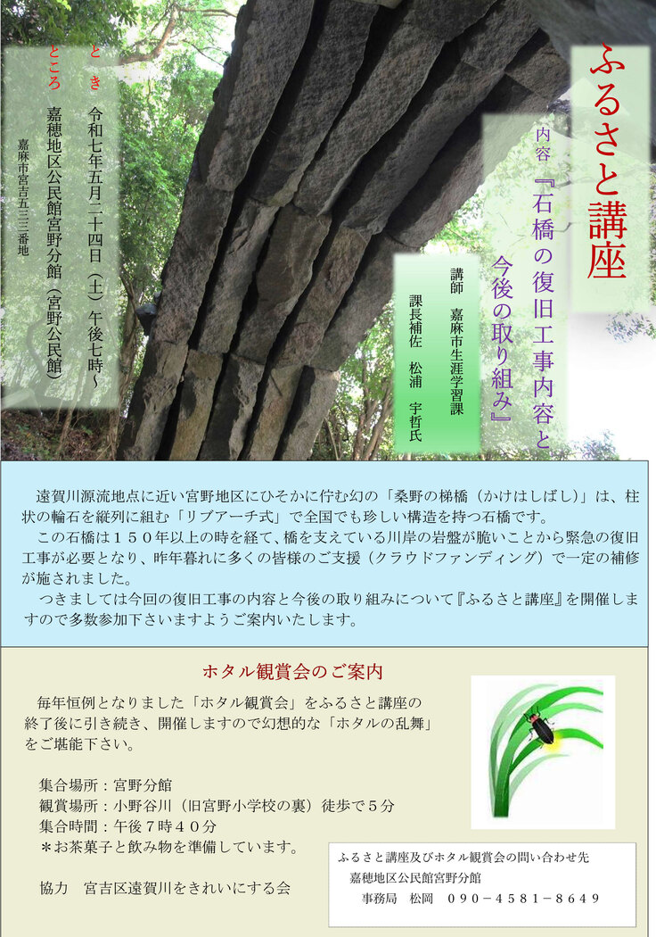 【今週末開催】幻の石橋「桑野の梯橋」復旧工事の完了報告と今後の取り組みを語る『ふるさと講座』のご案内