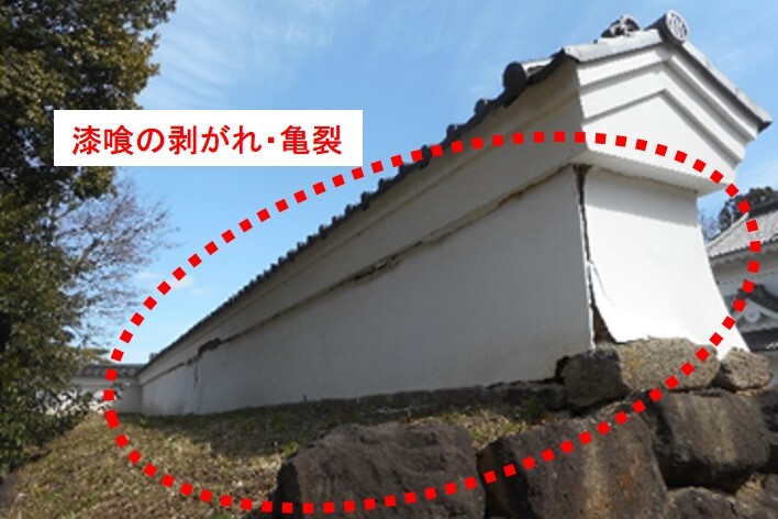 令和3年2月と令和4年3月に起きた地震では、漆喰に亀裂が入る等の被害がありました。