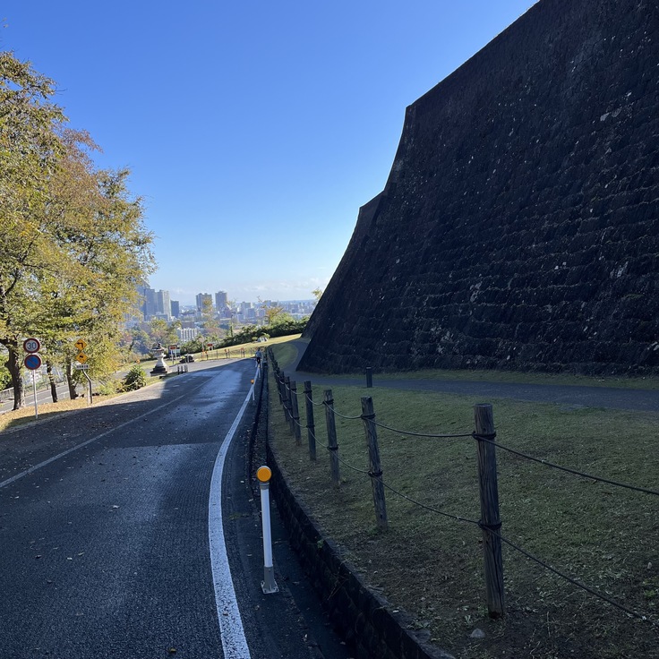 <杜の都仙台を望む、仙台城跡北壁石垣>