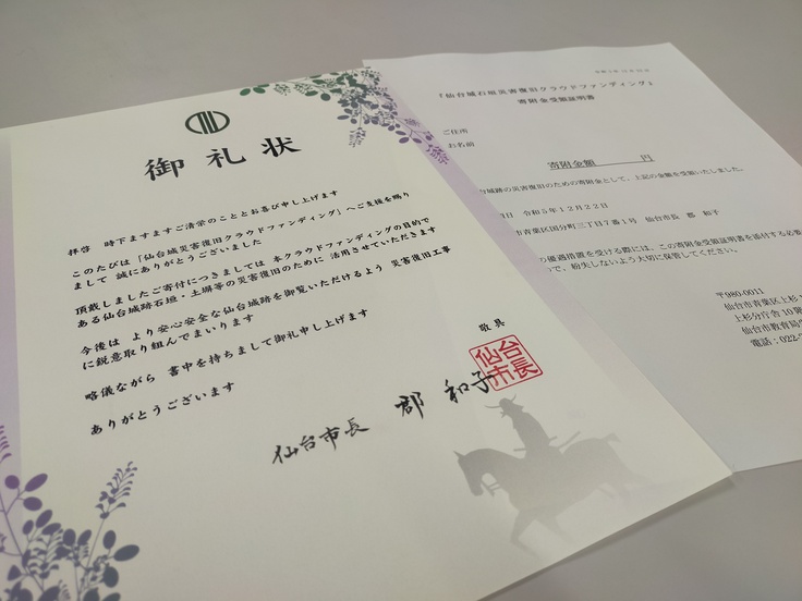 返礼品の発送と【仙台城特別トークショー(講演会)】についてのお知らせ
