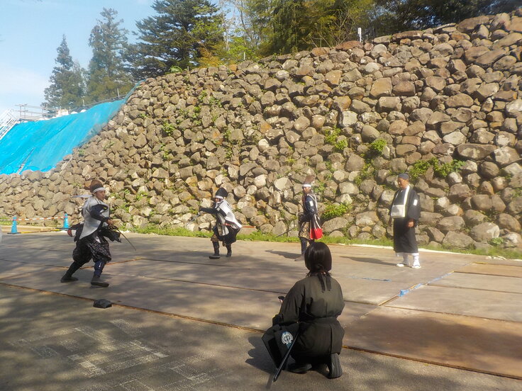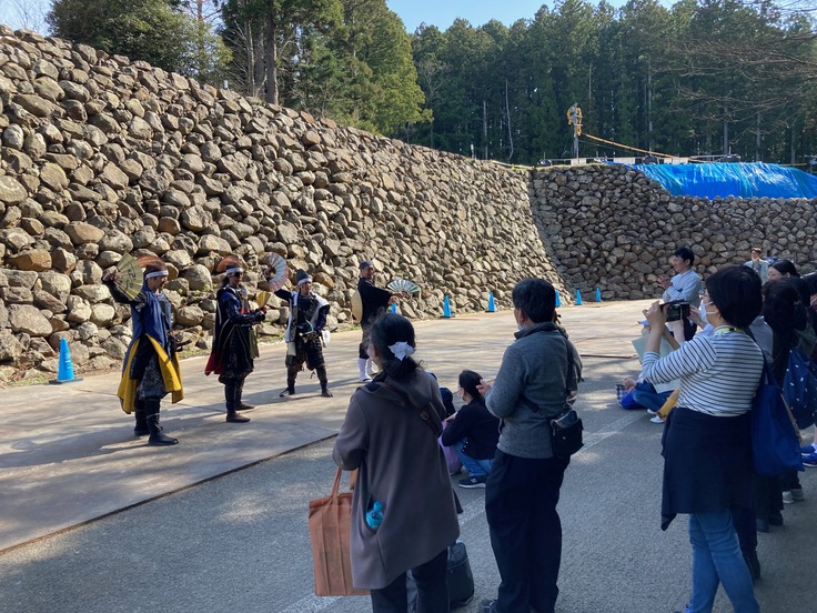 そんな復旧途中の石垣をバックに、伊達武将隊さんにサプライズで演舞をご披露いただきました。