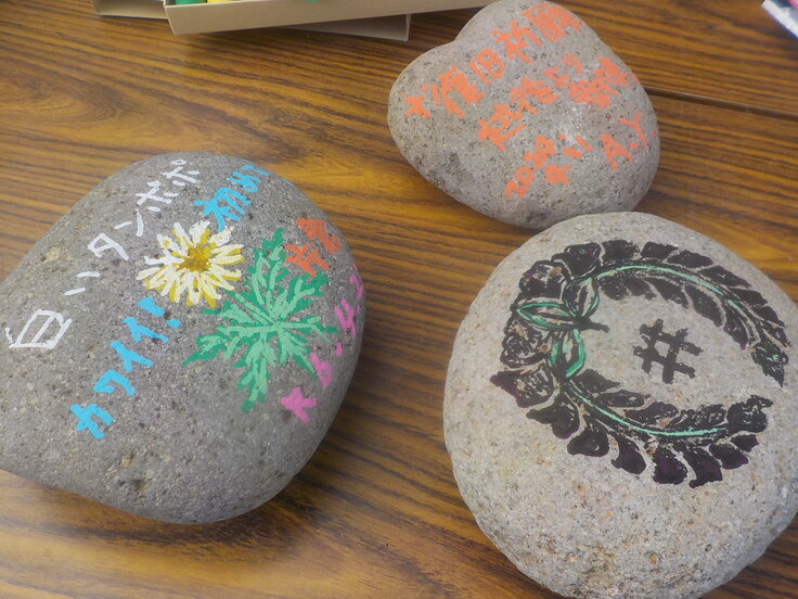 メッセージやイラストなどなど、、、皆さん個性あふれる裏込石で、とても素敵でした。