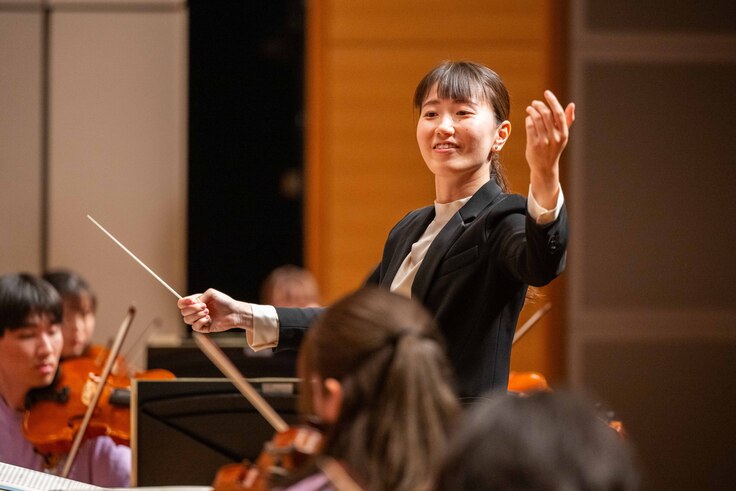 金管楽器によるデュカスの〈ファンファーレ〉で幕開けし、ロッシーニやサン=サーンス、マーラー、ドヴォルザークの色彩豊かな作品に取り組みました。