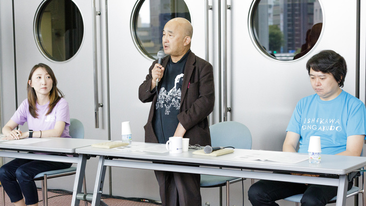 記者発表では、石川県ジュニアオーケストラとの合同コンサートおよび被災地コンサートに出演する指揮者の広上淳一氏、石川県ジュニアオーケストラの指揮者である松井慶太氏、京都コンサートホール プロデューサーの高野裕子が登壇しました。