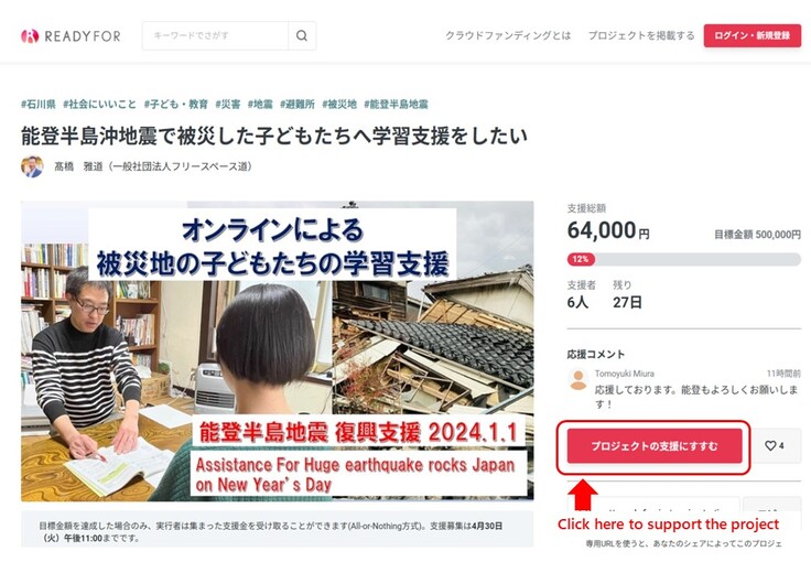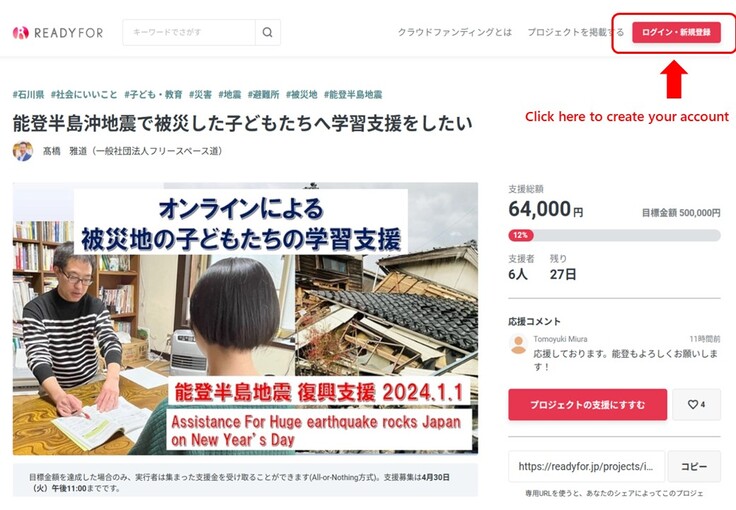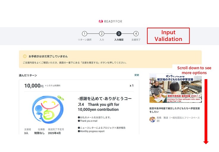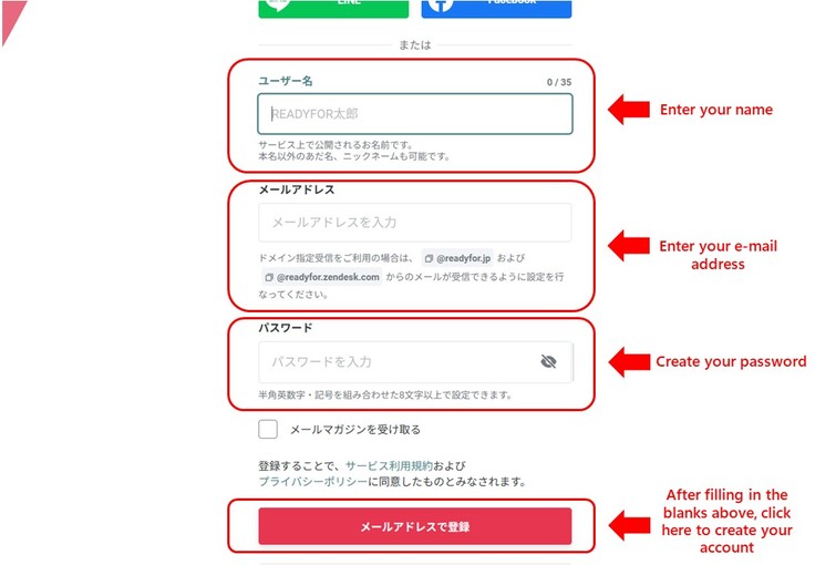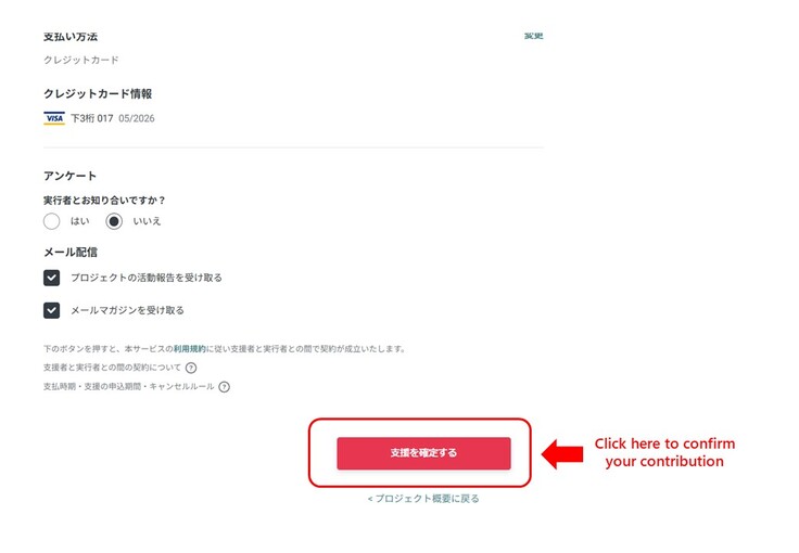 Once you click the red button, you will receive an email from Readyfor (no_reply@readyfor.jp) and you will be asked to verify your email address by clicking the first URL on the email.