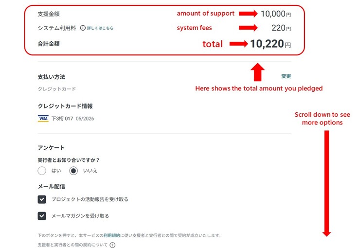 If you agree with the amount you pledge, please click the red button in the bottom right to confirm your contribution.
