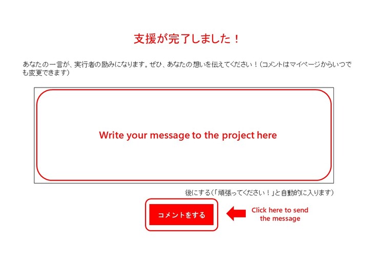 Please write your message to the project (the message will be listed on the project page) and send the massage by clicking the red button below the blank.