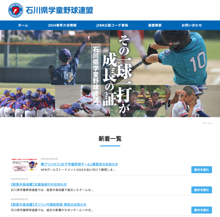 石川県での学童野球において、大会運営・普及拡大・組織管理を担っている団体です。 令和6年能登半島地震を受けて、能登の学童野球を支えていくため災害復興支援室を設置して、支援を受け入れ、被災地へ届ける活動に取り組んでいます。