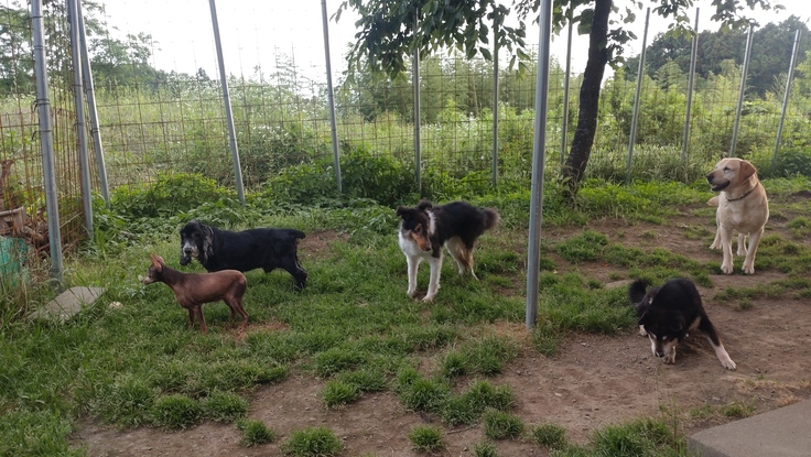 ボランティアさんの多大なるご支援もあり、現在は庭でわんたちをフリーにすることができるようになりました。