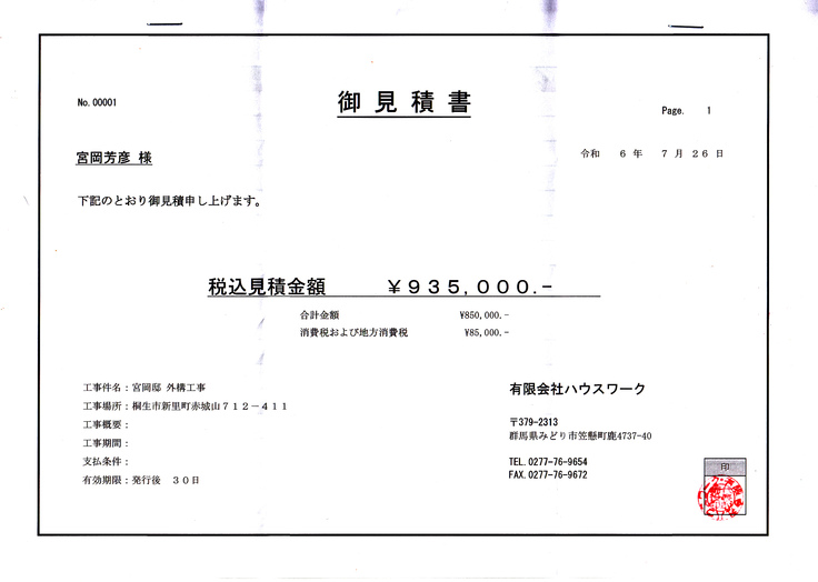 残り期間が短く、業者の方には電話で相談させていただいただけで見積書などは間に合わなかったのですが、