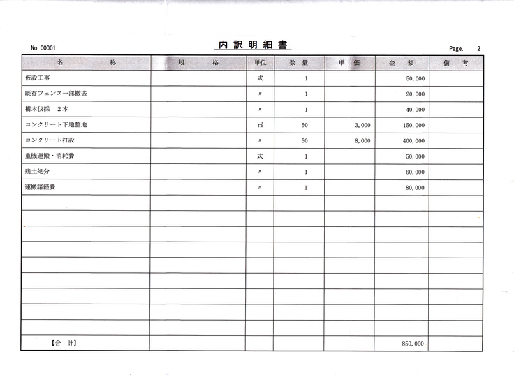 実際にかかる費用は多少前後すると思いますが、不足することのないよう余裕を持った見積もりにしていただきました。