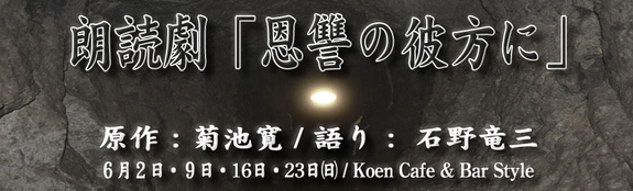 主に声優として活動している石野竜三と申します。普段はアニメやゲームに声を当てる仕事をメインに活動しておりますが、その傍らで自ら企画制作しながらライブで語る語り芝居(朗読劇)を定期的に行っています。