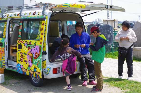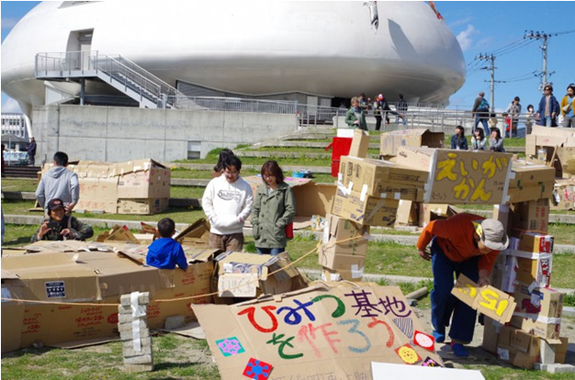 3月11日の震災後、石巻の街中と近隣の公園は被災し、被災していない公園や多くは仮設住宅の用地になりました。子どもたちは外で安心して走り回れる空間がなく、家の中にこもってゲームやお絵描きをしています。