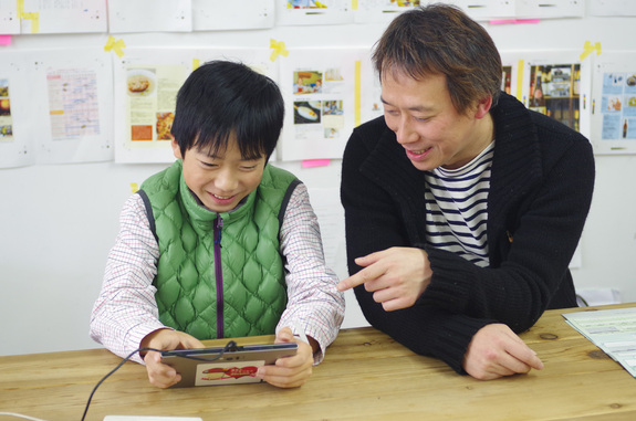 (地元の小学生と遊び方について一緒に考えている時の様子)