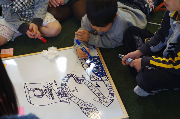 子ども達の絵を眺めながら大人チームも知恵を絞ります。