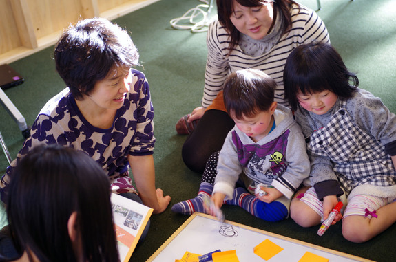 この遊具づくりのワークショップには、毎回たくさんの子育てサークルのお母さん達が参加してくれます。
