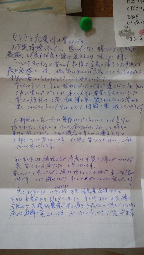 「お手紙拝読しました。思いがけない嬉しいお手紙に感動し、何度も何度も読み返しては 涙しています。時々思い出しては”元気にしていらっしゃるかしら””前向きに暮らしていらっしゃるかしら?”と案じていました。