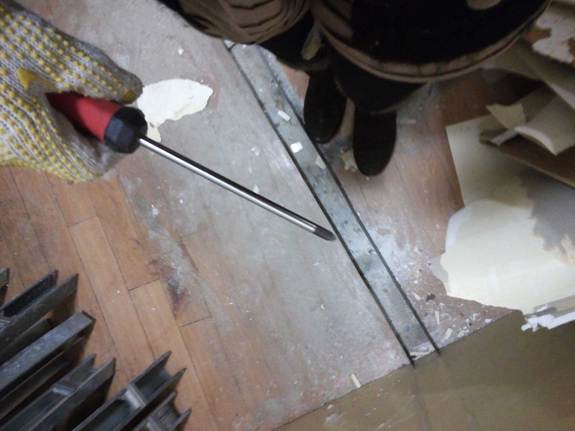 分かりますか?下記のように、床の上にレールをうちつけたところに