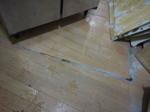 津波に浸かった石膏ボードが海水を吸い上げてしまっている状態。