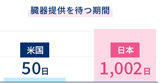 たとえば、心臓移植を待つ患者の医療費は、1か月あたりおよそ1,000万円にも上ります。日本ではその待機期間が平均1,002日——およそ3年に及びます。この間に使用される医療費は3億円以上になります。一方、アメリカでは平均50日ほどで移植が行われています。しかし、その海外渡航移植も問題となっています。