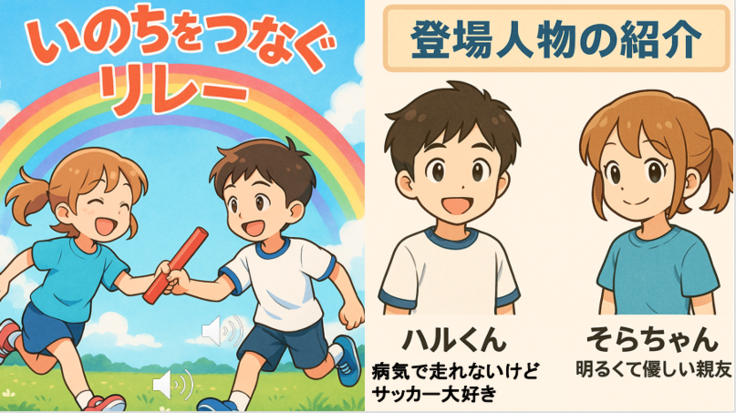 子どもたちに「いのちをつなぐ移植医療」の大切さを伝えるため、ご寄付された方の提案を頂戴し、一般社団法人日本移植会議の理事である医療の専門家が監修した紙芝居動画を制作します。