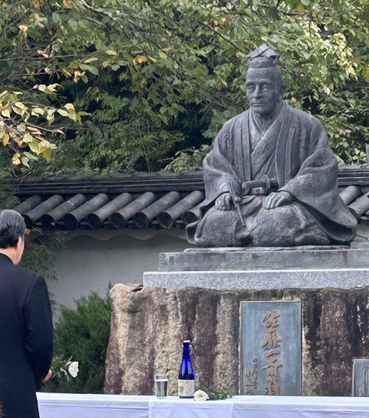 続けて、佐藤一斎の銅像前にて、言志祭も開催されました。本年度より、NPO法人いわむら一斎塾が、お祭りのお世話を行うことになりました。雨もやんで、岩邑小学校6年生の皆さんの元気な群読に花を添えていただきました。ありがとうございました。