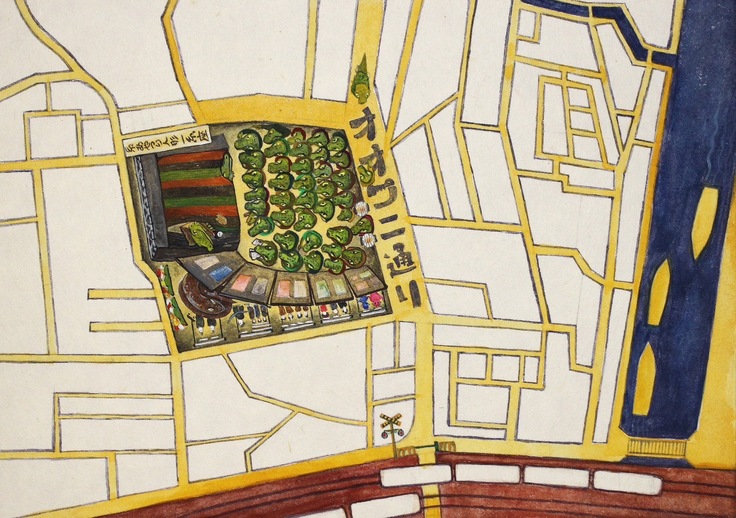 地図に載っていない大鰐通りからとった「オオワニ通リ」を地図にしてしまおうと考えました。