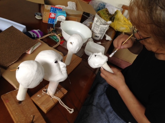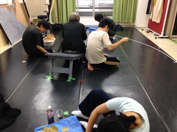 みんなで、人形製作・衣装製作・大道具・小道具製作中です。初日まであと1週間、いよいよ追い込みです!