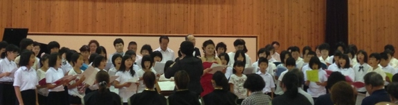 (※写真は日本で行ったコンサートの最後に小学生や地元の方と一緒に歌っている様子です。)