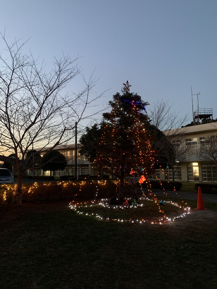 いすみ学園の園庭にはツリーが飾られ、利用者さんのお部屋からは消灯時間となる夜9時まで