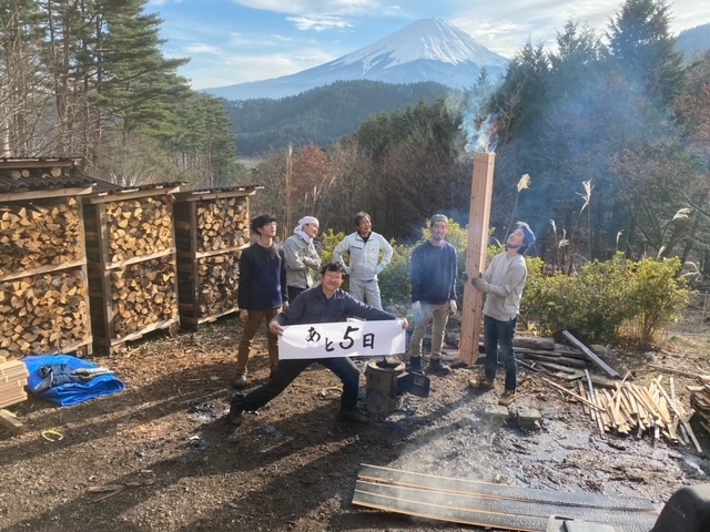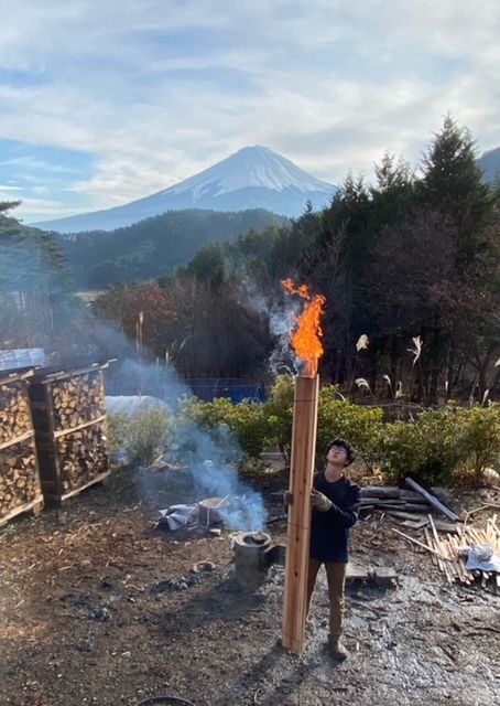 普通に購入すると、杉材の3倍の値段になってしまう焼杉を、試行錯誤しながら焼き上げていきます。