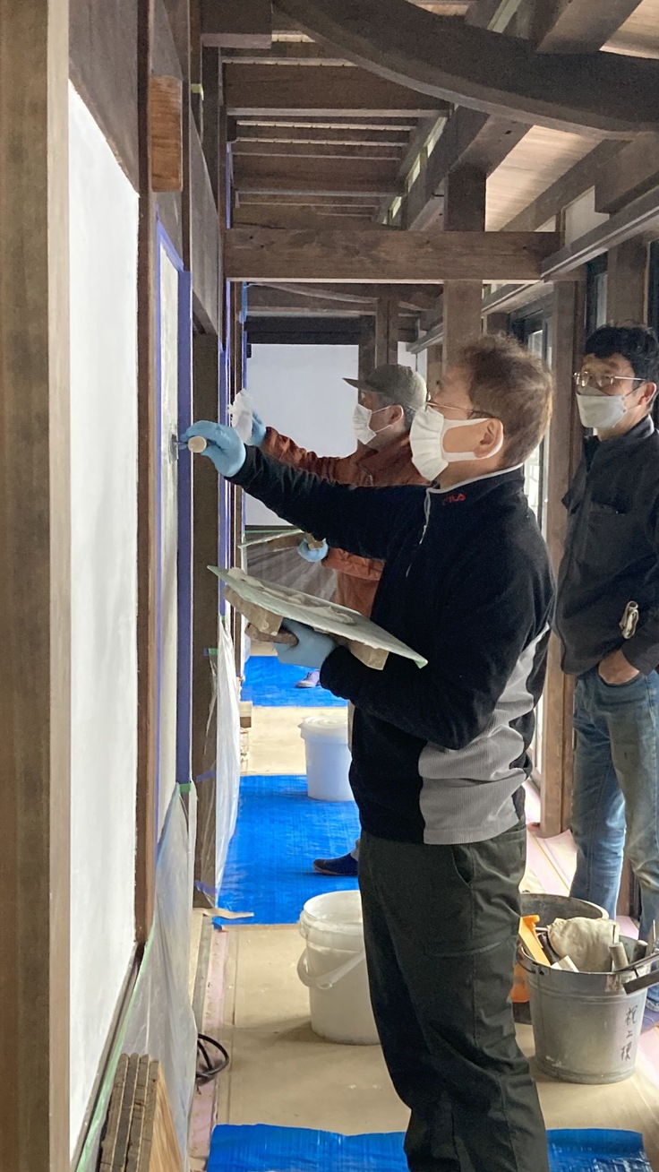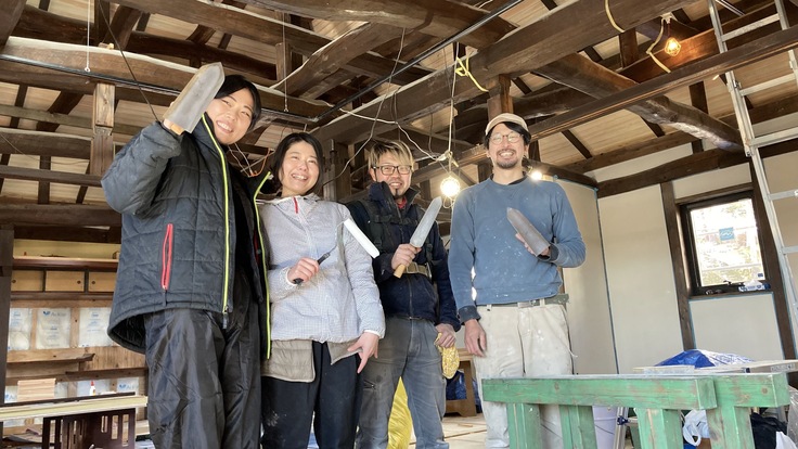 一方で、寒さと暖かさが微妙な春でしたが、内壁の漆喰塗りワークショップは、京都の素敵な左官職人・岩本氏を講師に、3月中に和気藹々と遂行することが出来、内壁の全てを仕上げることが出来ました。
