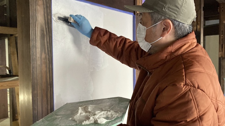5月に入ってから、埼玉から左官名人・鏝晴さんがやって来てくれました。美しいコテ捌きと仕上がりに惚れ惚れしてしまいます。次回新着情報には、鏝晴さん登場の予定です!