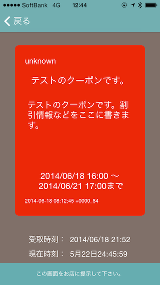 4.ユーザーが「受け取る」を選択すると,以下のようなクーポンが届きます。