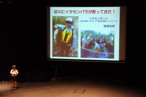 イタセンネットの取り組みには、小学生からシニアまで様々な世代の方が参加しています。たとえば、シニア世代の参加者から昔の淀川のことを学んだ小学6年生の福﨑君は、先日海遊館で開催されたシンポジウム「生物多様性ってなんだろう? ~琵琶湖・淀川・大阪湾から考える~」で、彼の思いをこう語りました。