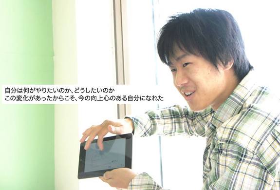 イトナブの影響で、将来の自分を真剣に考えるようになり、私ともう一人の同級生が進路を就職から進学に切り替えました。 私は、電気工事士になるために第二種電気工事士免状を取得し、就職するつもりで二年生を過ごしました。しかし、三年生になりイトナブで活動するようになってから、幼いころから夢見ていたプログラマになりたい、そしてもっと技術を磨きたいと強く思うようになりました。 そして、イトナブに通いながら通学できる大学校へ進学しました。 大学校に進学してから、イトナブの事務所や大学の実験室等で自分の知りたい技術の勉強や実験を自由にできるようになり、本当の意味での勉強をすることが出来ました。進学して本当に良かったと思っています。