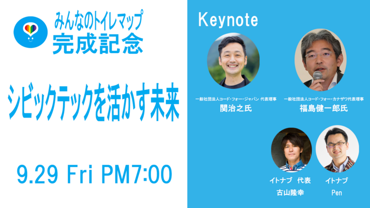 さて、「みんなのトイレマップ」の完成を記念し、9月29日金曜日19時より、YouTubeのライブによるオンラインイベントを開催することになりました。